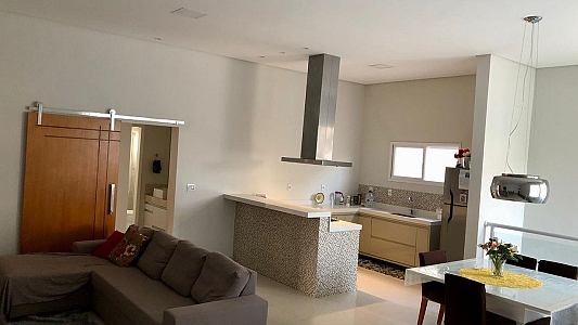Sobrado com 226m² construídos em terreno de 370m², com 3 dormitórios (1 suíte com closet), todos com armários planejados, 4 banheiros, sala e cozinha integradas, escritório e garagem para 2 carros.