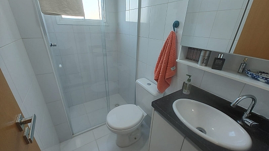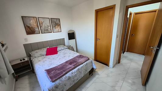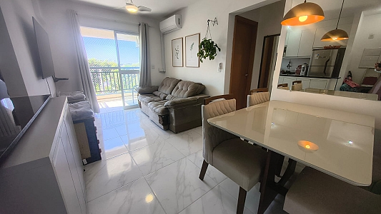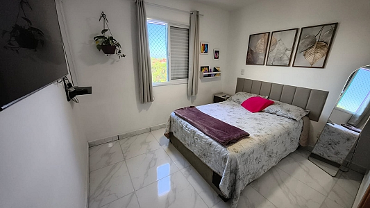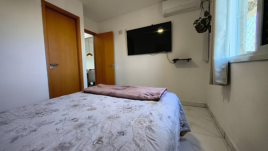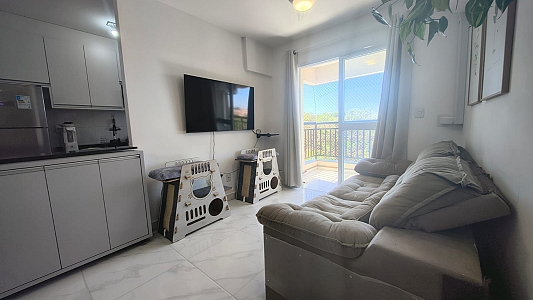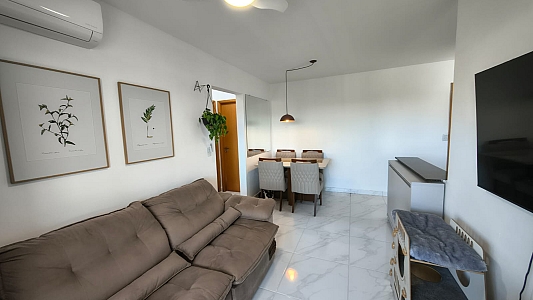 Excelente apartamento com 2 dormitórios, sendo 1 suíte com ar-condicionado. O segundo dormitório onta com armário embutido, oferecendo praticidade e organização. A sala ampla para dois