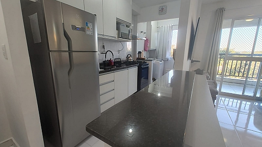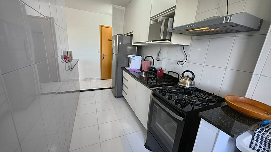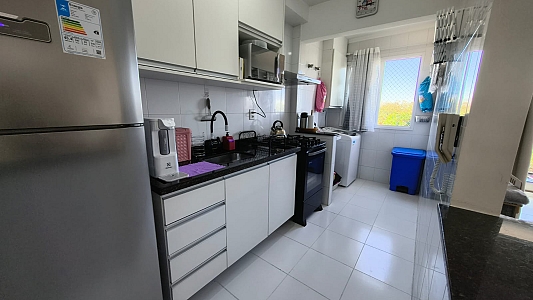 A cozinha é totalmente planejada, assim como a área de serviço, otimizando os espaços com funcionalidade e bom gosto.