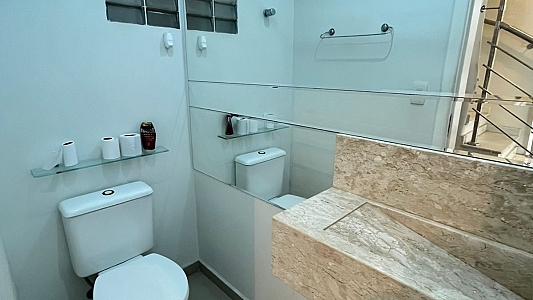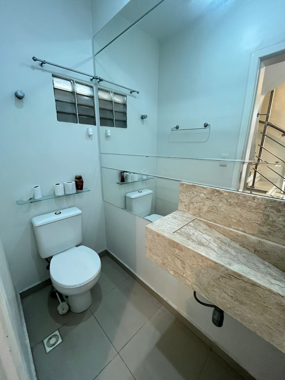 Conta ainda com 5 lavabos, 4 banheiros e 3 vagas de garagem.