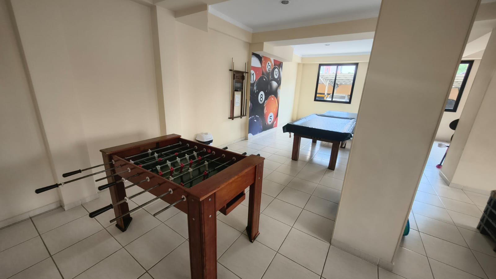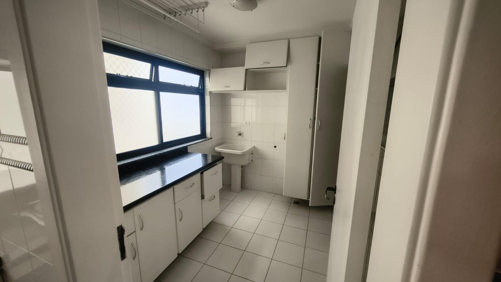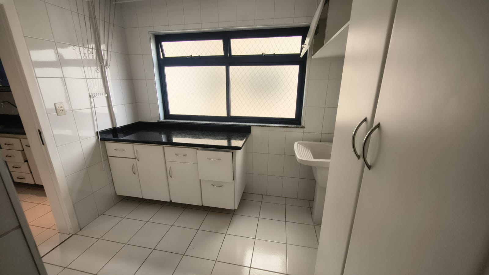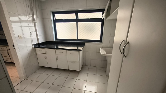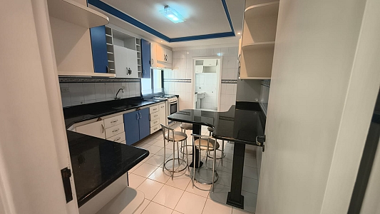O apartamento é totalmente planejado e a cozinha grande oferece muita funcionalidade.