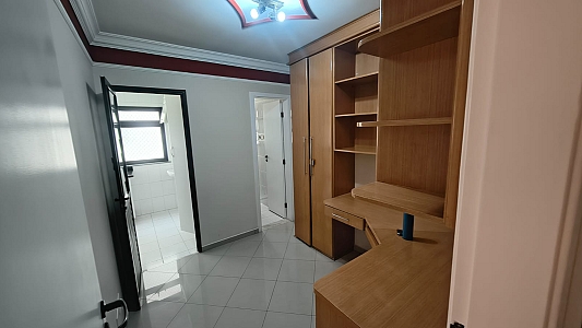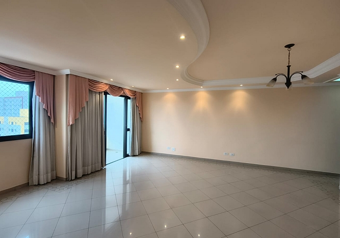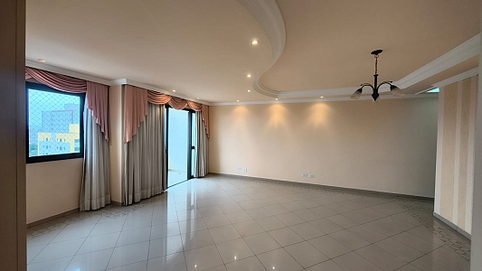 Viva com todo o conforto neste apartamento de 124m². Com 3 dormitórios (sendo 1 suíte) e um escritório com banheiro (que pode se tornar uma suíte extra), o espaço é ideal para acomodar sua família. A sala espaçosa para dois ambientes se conecta a uma ampla sacada com uma bela vista da cidade.