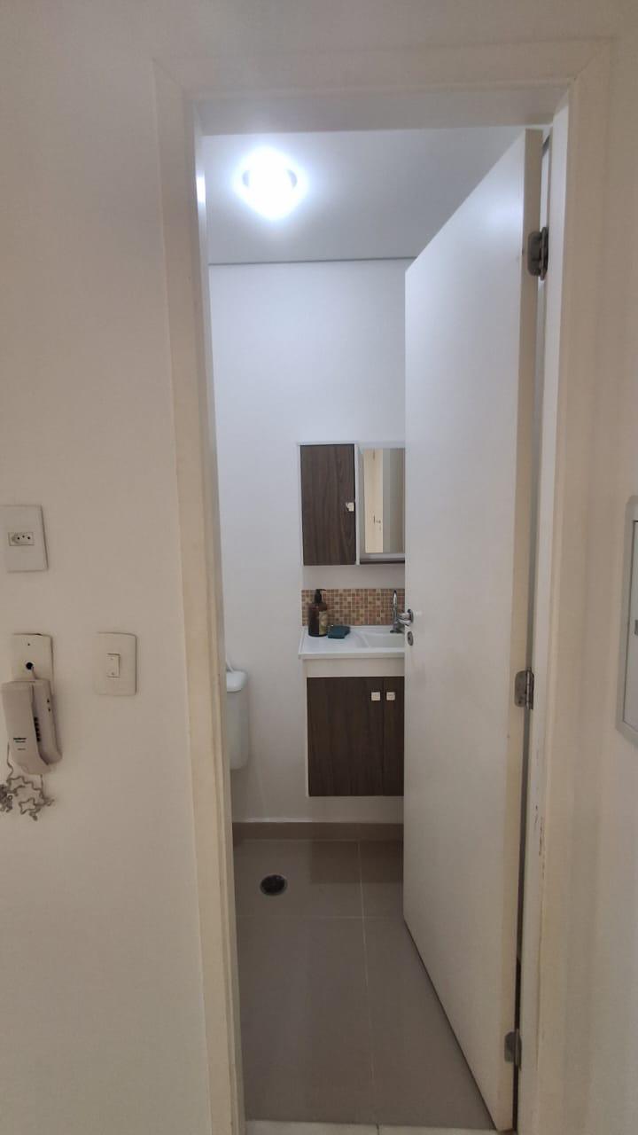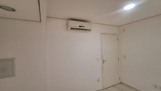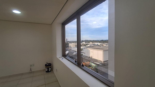 Sala comercial de 28m², em andar alto, com bela vista, equipada com ar-condicionado, banheiro privativo e 1 vaga de garagem.