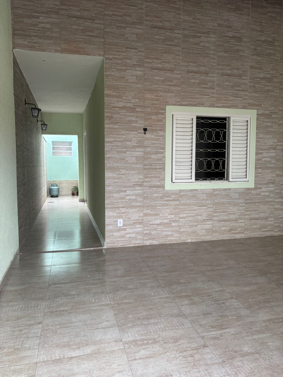 A garagem acomoda até 2 veículos e já conta com portão eletrônico para maior comodidade.