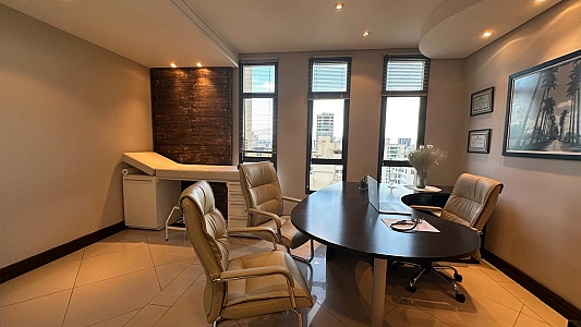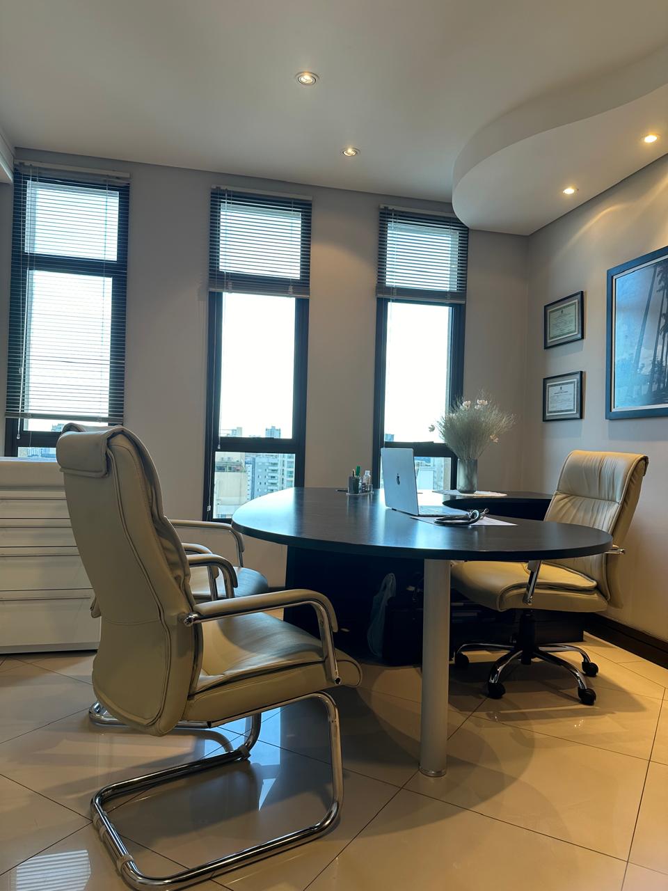 Excelente oportunidade! Sala comercial de 53m² totalmente mobiliada e pronta para uso. Localizada em andar alto, oferece um ambiente sofisticado com projeto de iluminação, teto rebaixado, ar condicionado e móveis planejados de alta qualidade.