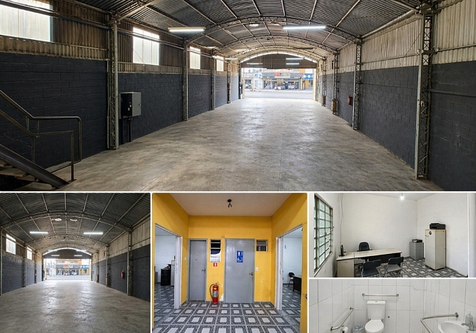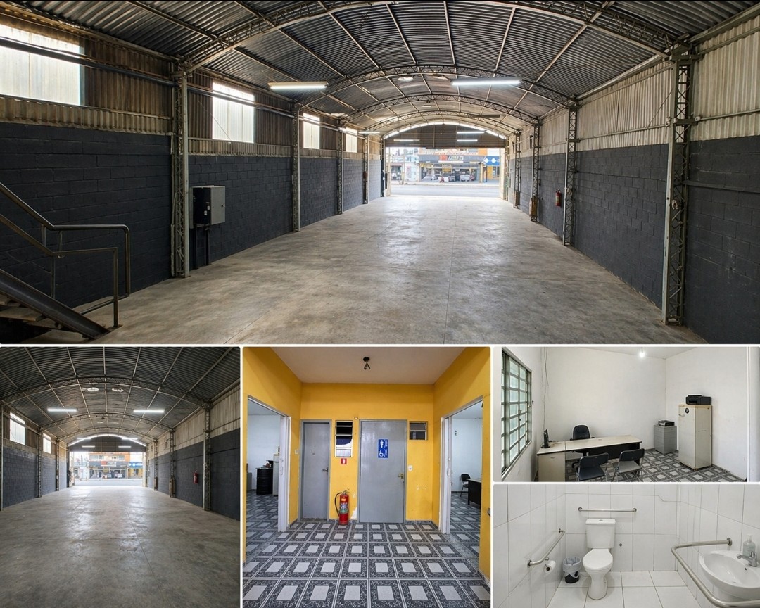 Funcionalidade: O galpão conta com escritório, copa, 3 banheiros, mezanino e pé direito alto, oferecendo estrutura completa para diversas atividades comerciais.