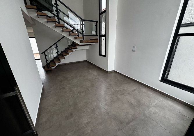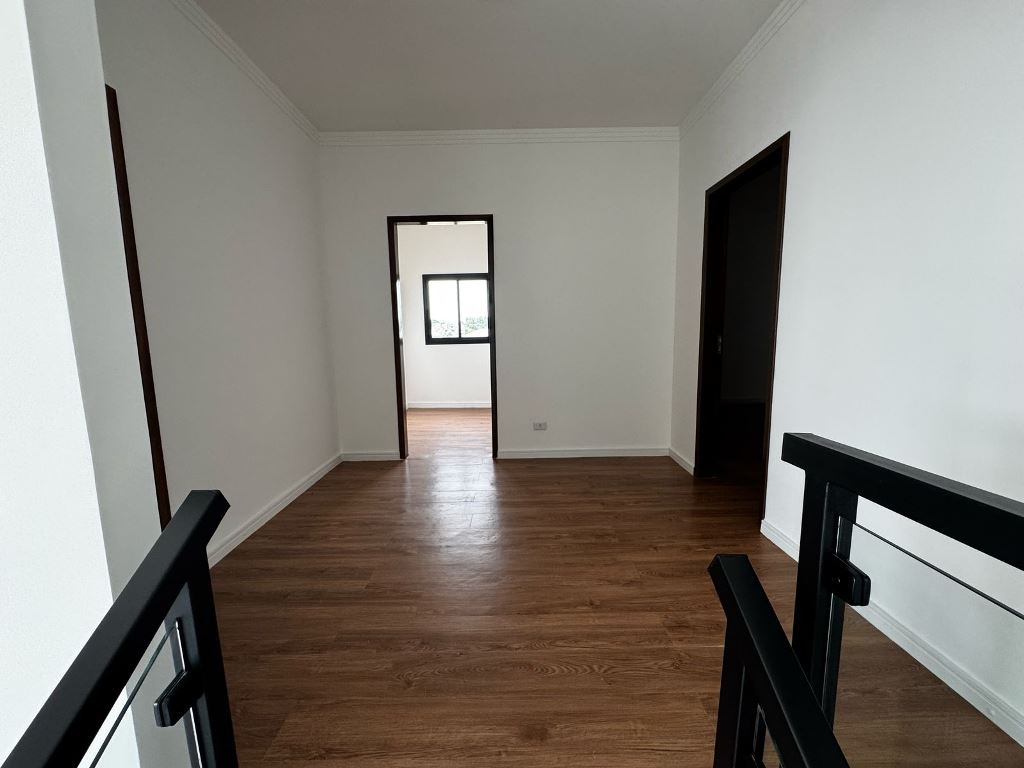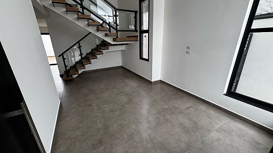Este sobrado, num terreno de 252m², novo combina design moderno com funcionalidade. Com um imponente pé-direito duplo na sala, o imóvel oferece ambientes amplos e iluminados em seus 197m² de área construída.