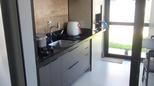 Esta charmosa casa térrea oferece um ambiente moderno e confortável, com 2 dormitórios, sendo 1 suíte com ar condicionado, garantindo aconchego e privacidade. A cozinha planejada é prática e funcional, ideal para quem aprecia cozinhar com organização. O imóvel conta ainda com um banheiro social e uma área gourmet com churrasqueira, perfeita para momentos de lazer com amigos e família. O quintal é espaçoso, proporcionando um ótimo espaço para atividades externas e lazer. A garagem comporta até 4 carros, sendo 2 vagas cobertas, oferecendo comodidade e segurança.