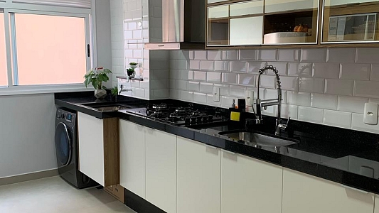 Imagine chegar em casa e controlar a iluminação da sua sala pelo celular. Receber amigos em uma varanda integrada com cortina de vidro e preparar um jantar em uma cozinha planejada com o elegante mármore São Gabriel.