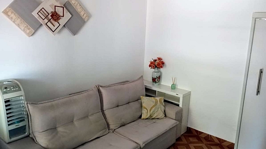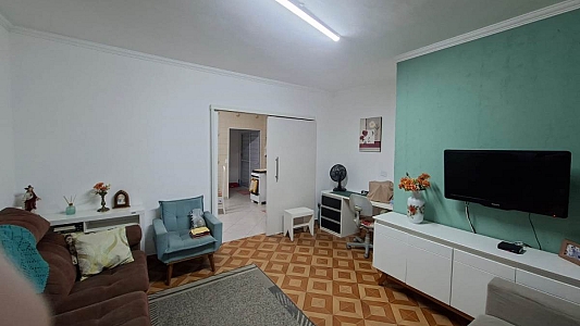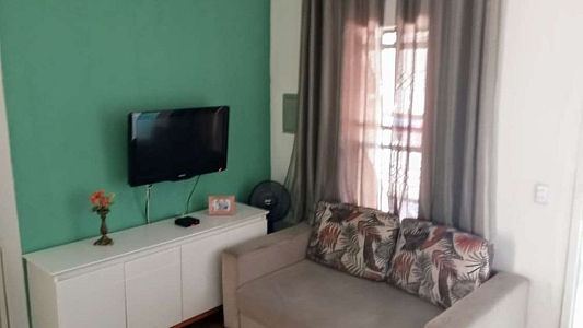 Espaço Interno: 2 dormitórios (sendo 1 suíte), banheiro social com box e gabinete, e uma ampla sala para 2 ambientes.