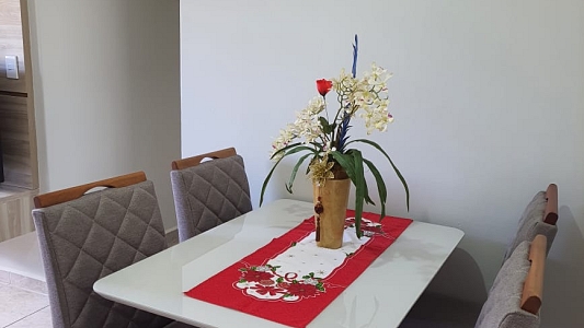 A sala integrada é perfeita para momentos de descanso, e o condomínio é um verdadeiro clube particular! Seus filhos vão amar o playground e a brinquedoteca, enquanto você aproveita a churrasqueira ou a quadra esportiva com os amigos. Tudo isso com a tranquilidade da portaria 24h.