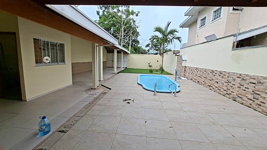 Este sobrado exclusivo destaca-se pelo seu amplo terreno de 250m², posicionado estrategicamente para oferecer um quintal generoso com piscina logo na entrada.