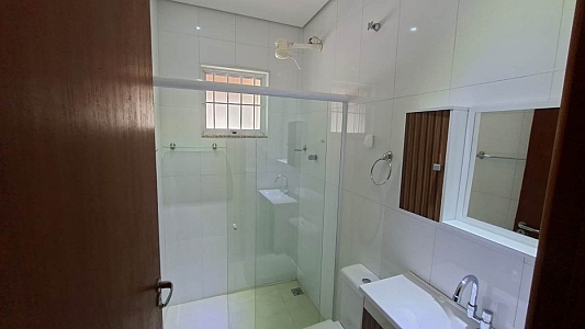 Com um projeto funcional, dispõe de 3 suítes (incluindo uma no térreo para total acessibilidade) e duas no piso superior com sacada. A área social integra sala para dois ambientes e cozinha americana planejada. Na garagem cabem 3 carros.