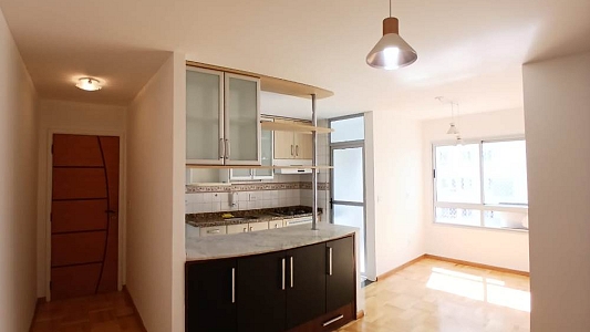 Desfrute de um imóvel repleto de armários planejados e excelente iluminação natural. Com 3 dormitórios (1 suíte), o apartamento possui sala integrada para dois ambientes e uma moderna cozinha americana equipada com forno e cooktop.