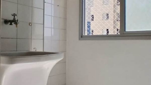 Conta ainda com área de serviço, banheiro social com box e gabinete, além de 1 vaga de garagem coberta.