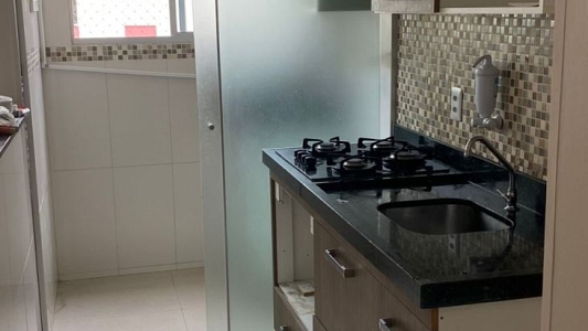 Este apartamento de 45m² otimiza cada metro quadrado: são 2 dormitórios aconchegantes e uma sala ampliada para 2 ambientes com ar-condicionado já instalado. A cozinha e a área de serviço contam com planejados de excelente qualidade, além de banheiro moderno com box e gabinete. Possui 1 vaga de garagem coberta.