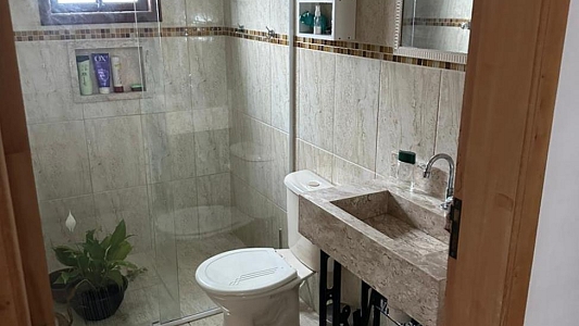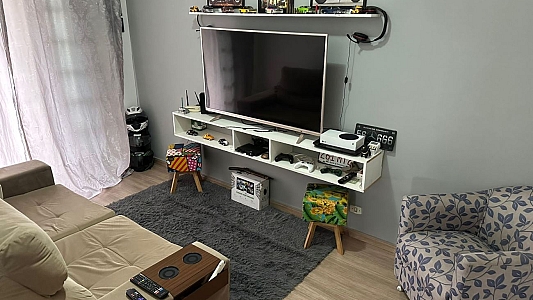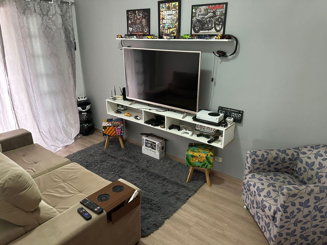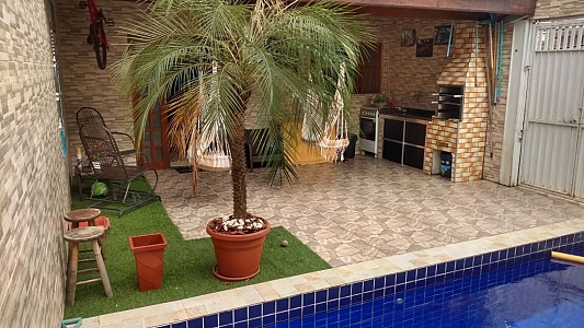 O lazer é completo, contando com área gourmet com churrasqueira e uma bela piscina.