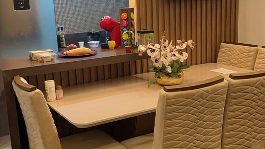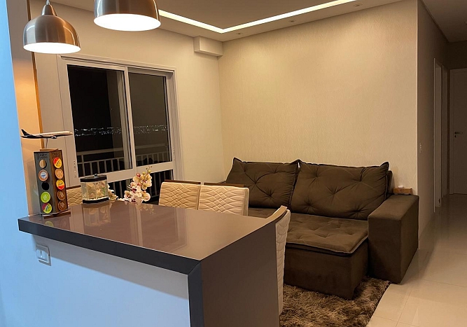 O acabamento é diferenciado, contando com sanca de gesso, iluminação moderna e infraestrutura pronta para ar-condicionado. A cozinha e os ambientes já possuem móveis planejados de alta qualidade.