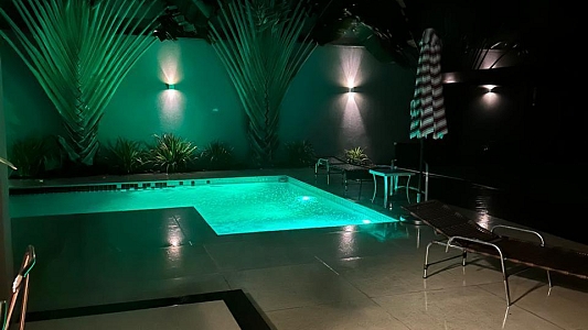 Área Externa: Piscina aquecida para desfrutar o ano todo, espaço gourmet com churrasqueira e garagem coberta para 2 veículos.