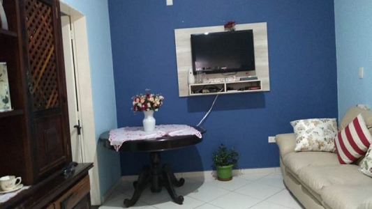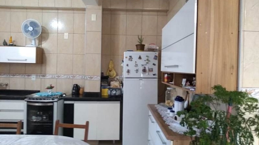 Sobrado num terreno de 150m², área construída de 120m², com 3 dormitórios, 2 salas, 2 banheiros, área de serviços, garagem para 2 carros.