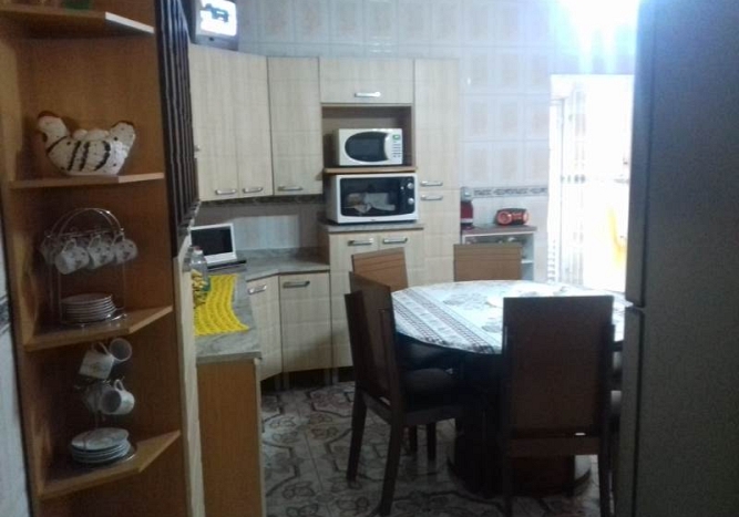 Sobrado num terreno de 150m², área construída de 310m² em 3 pavimentos, com 3 dormitórios, sendo 1 suíte, sala para 2 ambientes, cozinha com armários, banheiros com box e gabinete sob a pia, salão de 100m² no 3º pavimento e garagem para 3 carros.